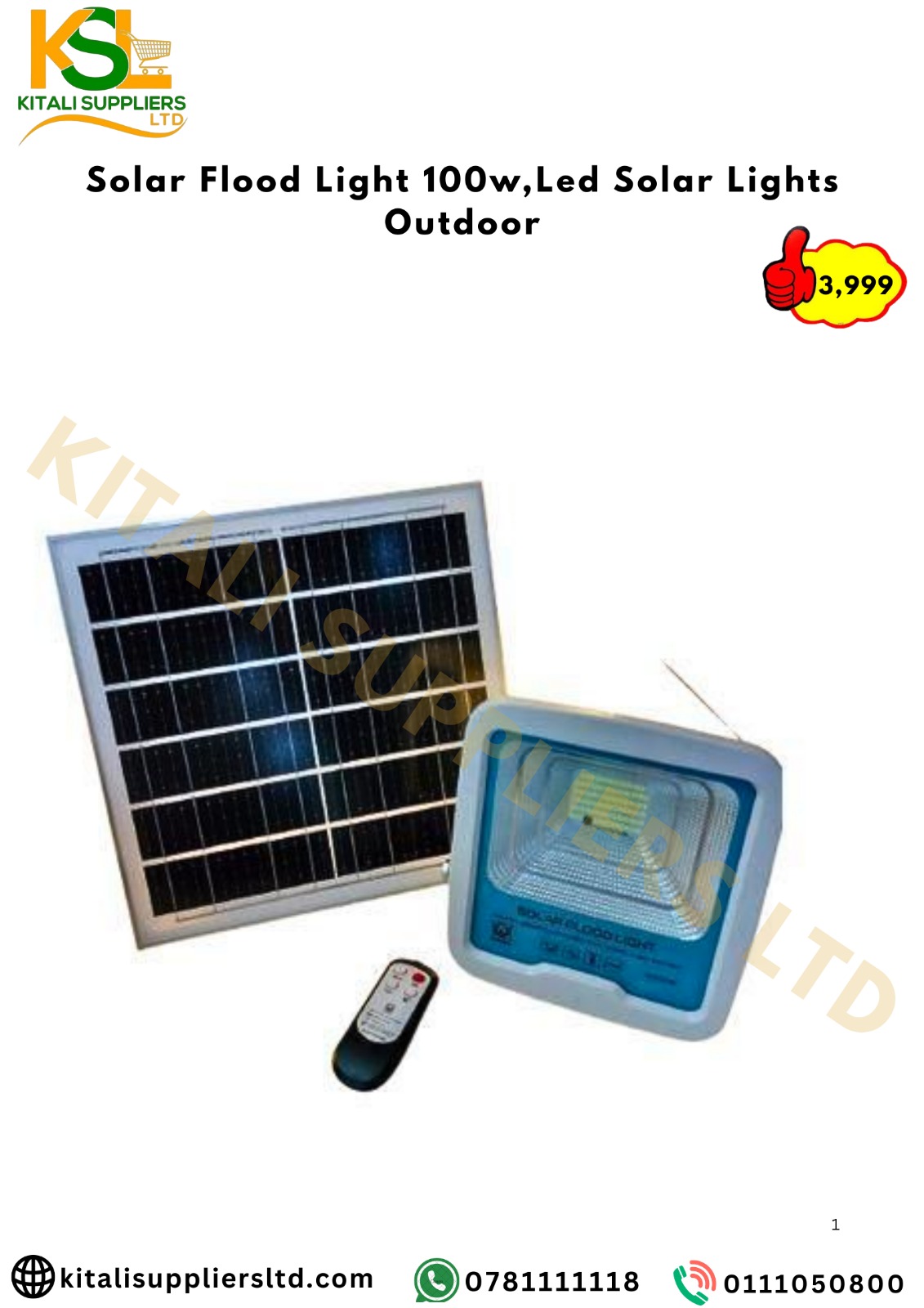 javascript:void(0)about:blank#blockedThe 100W Solar Flood Light is a high‑output, energy‑efficient outdoor lighting solution powered entirely by solar energy. It’s designed for areas such as driveways, gardens, patios, building exteriors, walkways, or security perimeters. Key features typically include: