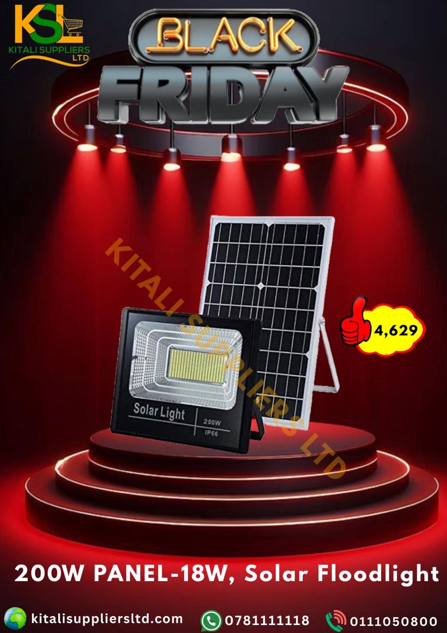 Illuminate your outdoors with unmatched brightness using the 200W LED Solar Floodlight with 18W Solar Panel. Designed for energy efficiency and powerful illumination, this solar-powered floodlight is perfect for gardens, parking areas, courtyards, warehouses, and building exteriors. Its 18W high-efficiency solar panel provides fast charging and extended lighting hours, while the weatherproof aluminum body ensures long-lasting durability in all weather conditions. Easy to install and maintenance-free, this eco-friendly floodlight delivers high performance, security, and sustainability in one smart lighting solution.