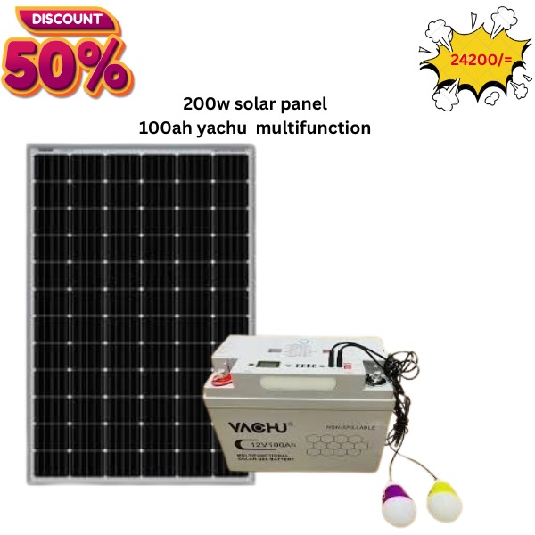 The 200W Monocrystalline Solar Panel paired with a 100Ah Yachu Multifunction Battery is a reliable and efficient solar power solution for homes, shops, and small businesses.