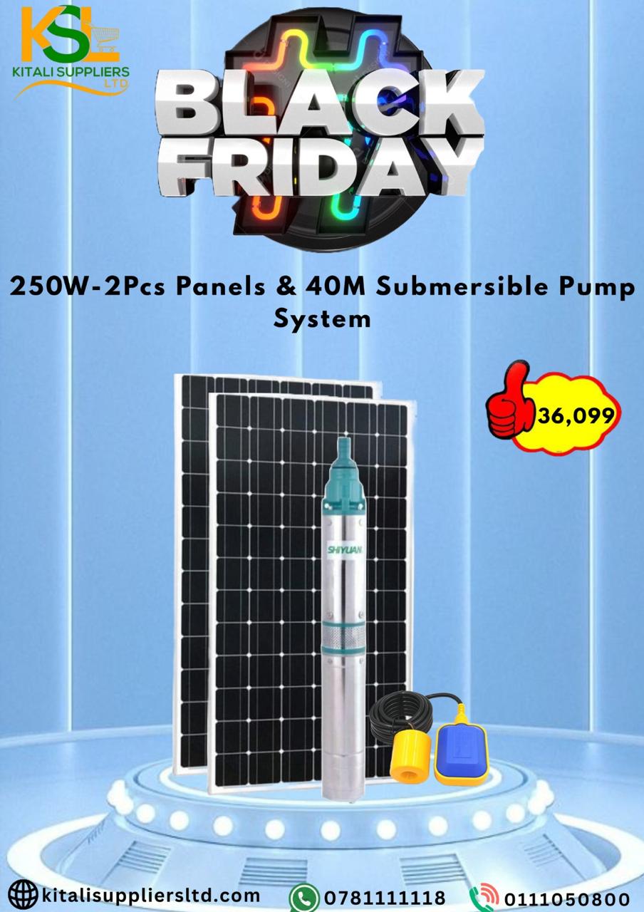 This complete kit includes two high-efficiency 125W solar panels (total 250W) and a durable submersible DC pump capable of lifting water up to 40 meters. Built with corrosion-resistant stainless steel and a brushless DC motor, the system ensures long-lasting performance, quiet operation, and minimal maintenance.
