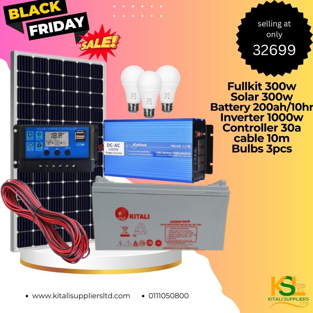 300W Complete Solar Kit – 200Ah Battery, 1000W Inverter, 30A Controller, 3 LED Bulbs & 10m Cable | Reliable Off-Grid Power Solution