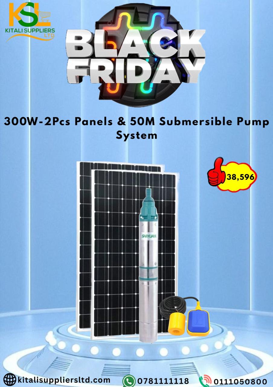 The 300W Solar Pump System (2 Panels + 50M Submersible Pump) is a complete off-grid water pumping solution designed for reliable performance and energy efficiency. Perfect for deep wells, farms, gardens, and remote water supply, this system harnesses solar power to deliver a steady water flow without relying on electricity or fuel.
