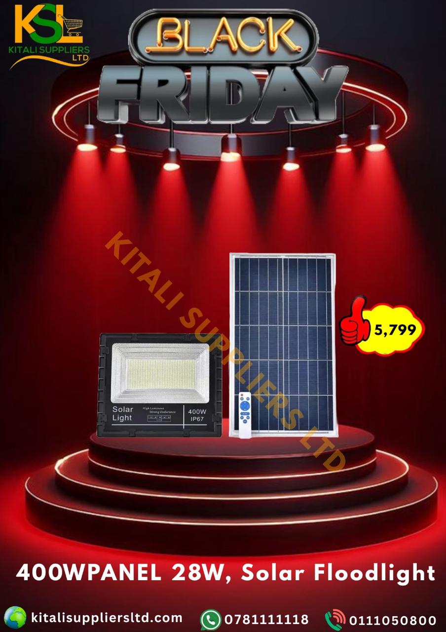 Illuminate your outdoor spaces with powerful, energy-efficient lighting using the 400W LED Solar Floodlight with 28W Solar Panel. Designed to deliver superior brightness and long-lasting performance, this solar-powered floodlight is perfect for gardens, courtyards, parking lots, warehouses, and security lighting. The 28W high-efficiency solar panel ensures fast charging and extended operation, while the rugged, weatherproof design provides durability in all weather conditions. Easy to install and maintenance-free, this floodlight combines performance, reliability, and eco-friendly operation — making it an excellent choice for residential and commercial use.