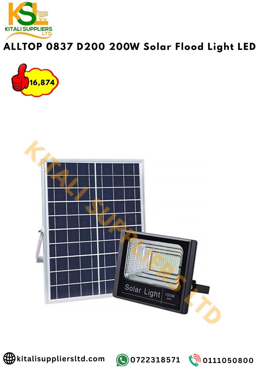 The ALLTOP 0837 D200 200W Solar LED Flood Light is a powerful, energy-efficient, and durable solar lighting solution built for outdoor illumination. Engineered with high-lumen LED technology and a large-capacity solar panel, it delivers excellent brightness and extended lighting hours without increasing your electricity bill.
