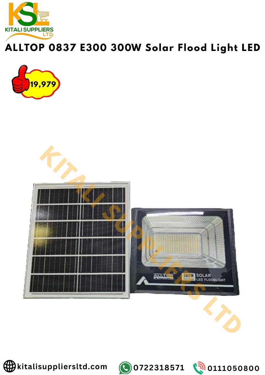 javascript:void(0)about:blank#blockedThe ALLTOP 0837 E300 300W Solar LED Flood Light is a high-efficiency, durable, and energy-saving lighting solution ideal for outdoor applications. Equipped with advanced high-lumen LED technology and a high-capacity solar panel, it delivers superior brightness while reducing energy costs to zero.