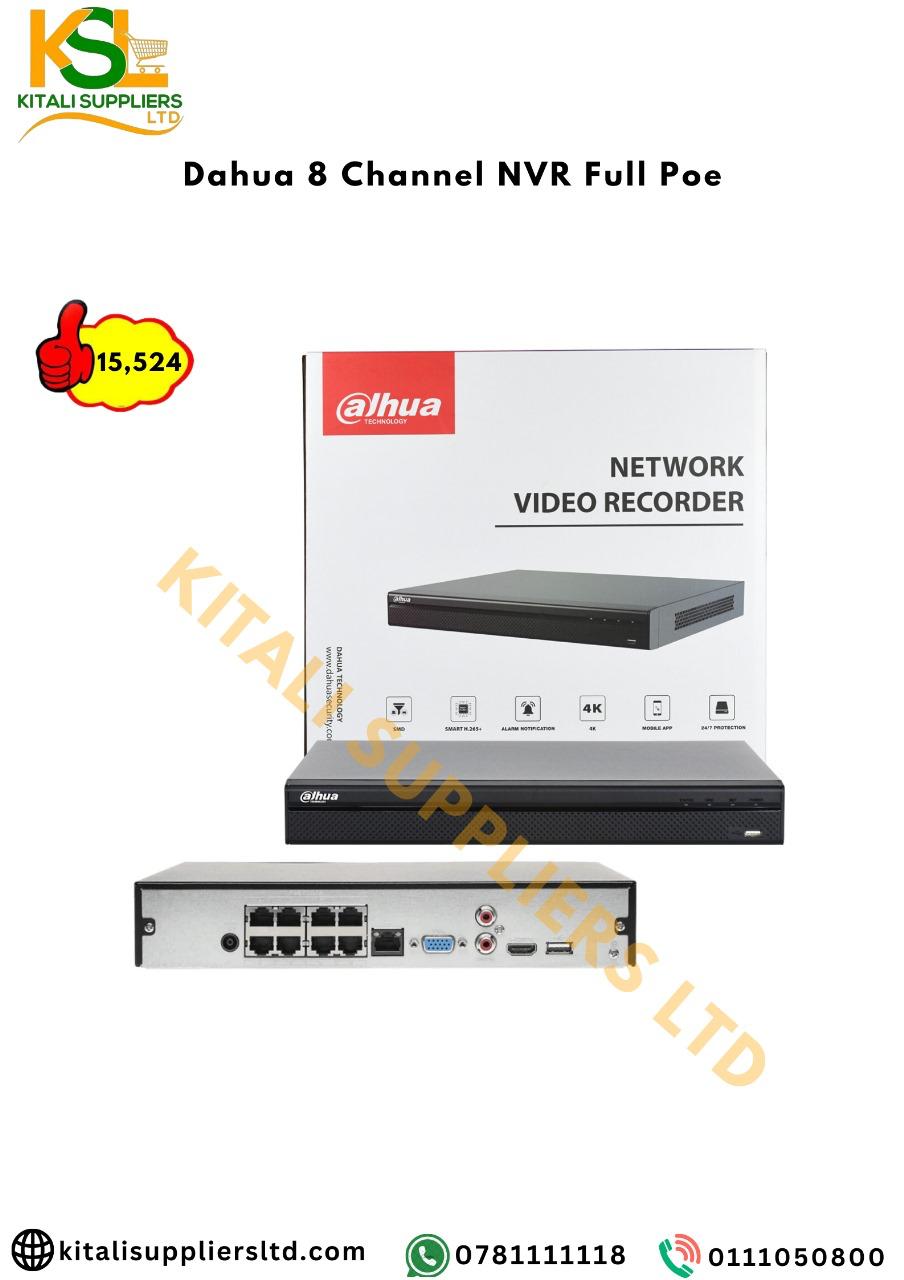 The Dahua 8 Channel NVR Full PoE is a powerful network video recorder designed for seamless surveillance management. With 8 PoE (Power over Ethernet) ports, it provides both data and power through a single cable, simplifying installation and reducing costs. Enjoy high-definition recording, remote viewing, and intelligent motion detection. Perfect for small to medium businesses and home security systems seeking reliable and efficient monitoring.