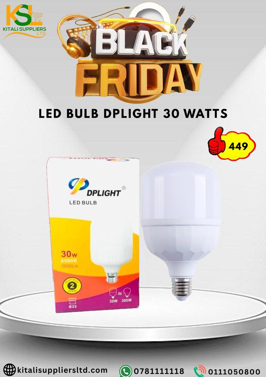 Brighten up your space with the DPLight 30W LED Bulb, a powerful lighting solution designed for energy efficiency, long life, and superior brightness. Perfect for large rooms, shops, offices, and outdoor areas, this bulb provides crisp white light that enhances visibility while saving up to 85% on energy consumption compared to traditional bulbs.