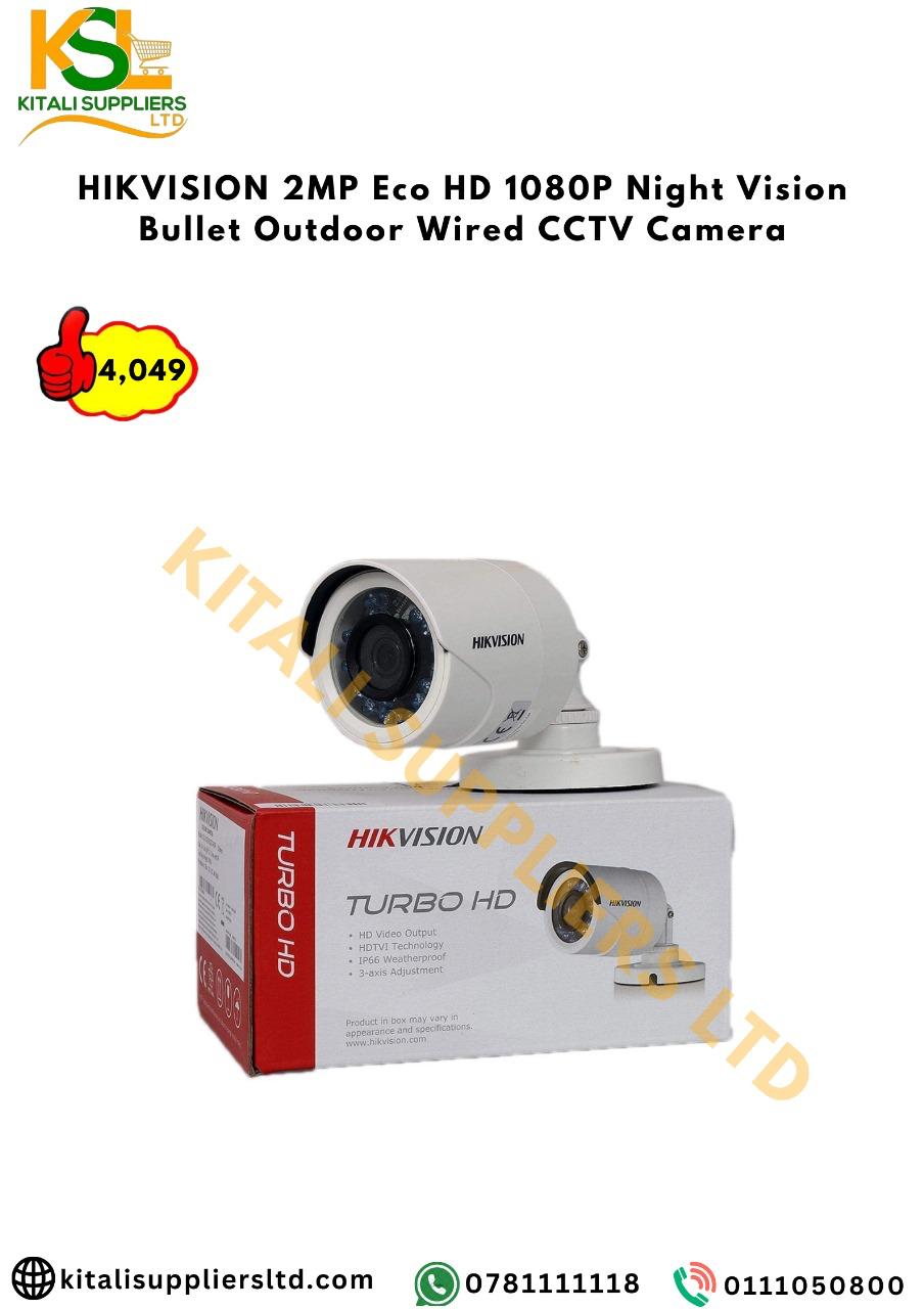 The HIKVISION 2MP Eco HD 1080P Night Vision Bullet Outdoor Wired CCTV Camera is a reliable and high-quality surveillance solution for homes and businesses. Equipped with a 2MP sensor, it delivers 1080p Full HD video, capturing clear and detailed footage. The infrared night vision ensures round-the-clock monitoring, while the weatherproof bullet design allows for durable outdoor installation. Perfect for users seeking cost-effective, dependable security with easy wired connectivity for stable performance.