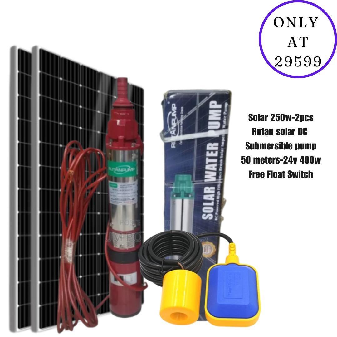 The Rutan Solar DC Submersible Pump Kit is a powerful and eco-friendly water pumping solution for deep wells, boreholes, and off-grid water supply. Equipped with a 24V 400W DC submersible pump, this system can draw water from depths of up to 50 meters. It is powered by 2 × 250W solar panels (total 500W), providing stable and clean solar energy. A free float switch is included for automatic dry-run protection, ensuring pump safety and durability. Ideal for agriculture, livestock, irrigation, and remote homes, this kit delivers reliable, maintenance-free water access wherever it's needed
