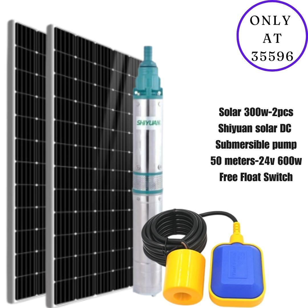 Shiyuan Solar DC Submersible Pump Kit – 24V 600W (50m Depth) with 2×300W Panels & Float Switch
