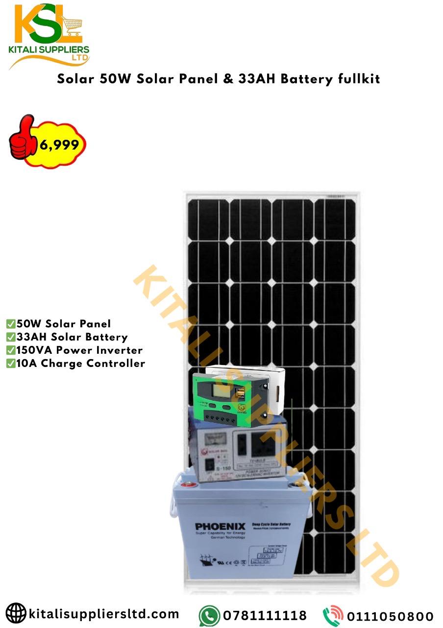 Experience clean, reliable, and efficient power with the Solar 50W Solar Panel & 33AH Battery Full Kit. Designed for homes, shops, and small off-grid applications, this kit provides a convenient and affordable way to generate and store solar energy.