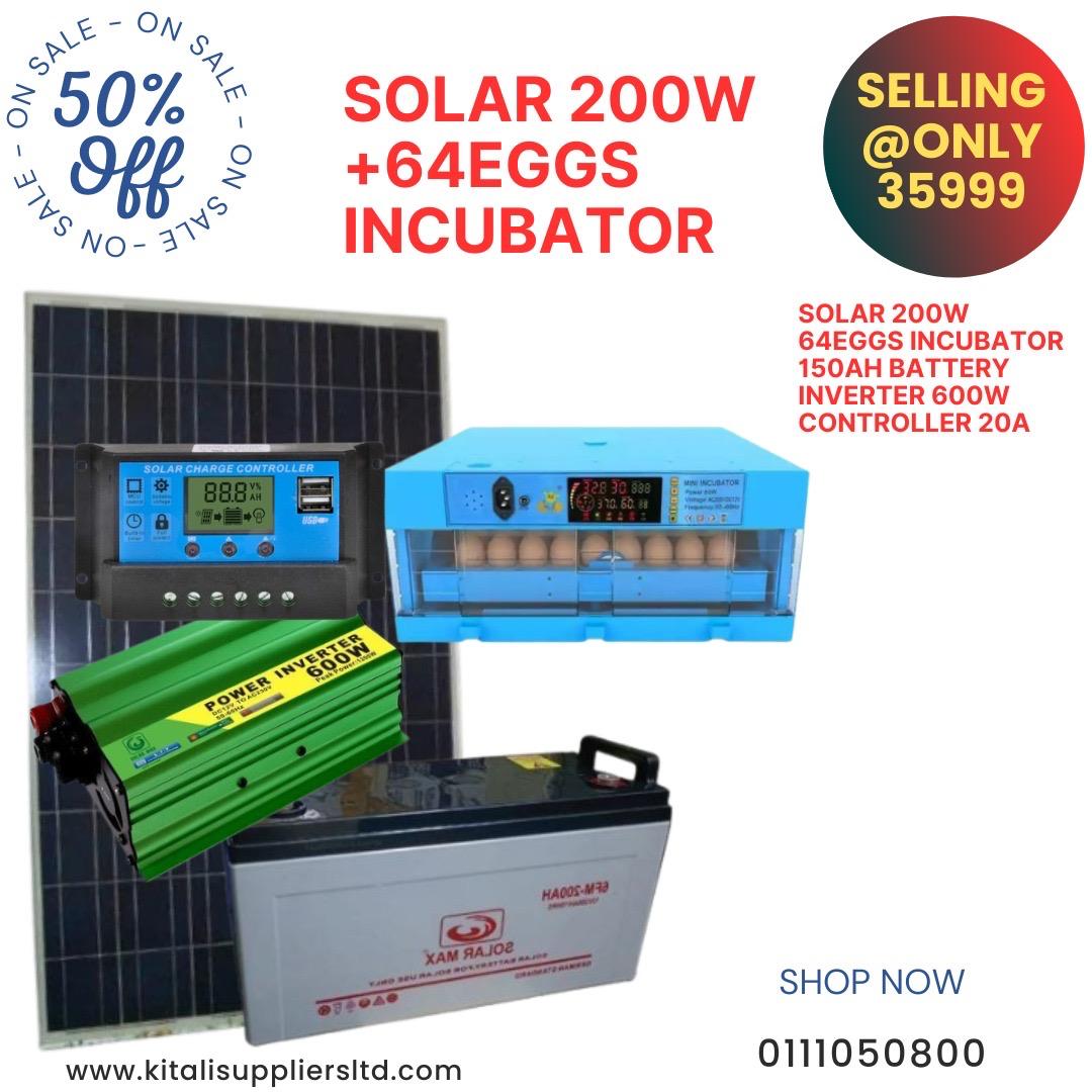 This all-in-one Solar 64-Egg Incubator Kit is a reliable off-grid poultry hatching solution. The system includes a high-efficiency 200W solar panel, a fully automatic 64-egg incubator, a long-lasting 150Ah deep cycle battery, a 600W pure sine wave inverter, and a 20A solar charge controller. Designed for remote or rural areas, this setup ensures uninterrupted incubation, optimal temperature regulation, and consistent hatching success rates—even during power outages. Ideal for small to medium poultry farms looking to adopt sustainable energy solutions.