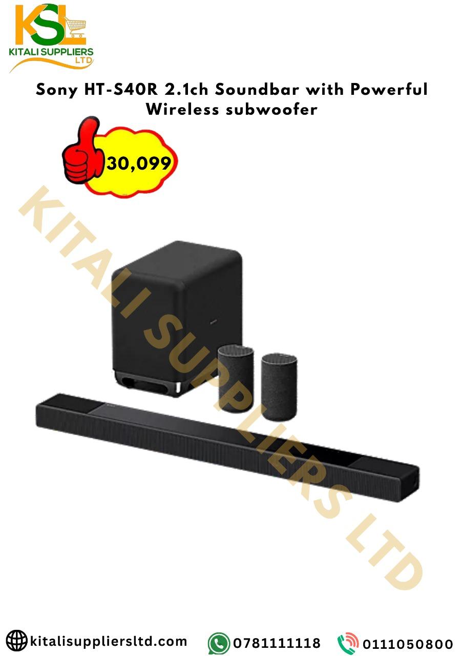 Bring cinematic sound to your home with the Sony HT-S40R 2.1ch Soundbar. Equipped with a powerful wireless subwoofer, this sleek black soundbar delivers deep, punchy bass and crystal-clear audio for movies, music, and gaming. Its wireless rear speakers and easy connectivity options create an immersive surround sound experience, transforming any living space into a premium home theater setup.